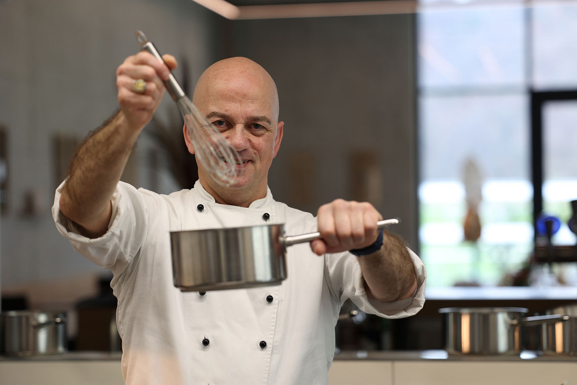 Der eine geprägt von der Präzision der Sternegastronomie, von Klarheit und dem Anspruch, Bestehendes immer wieder zu hinterfragen. Der andere gewachsen aus Erfahrung, Geduld und einem tiefen Verständnis für Produkt und Handwerk.